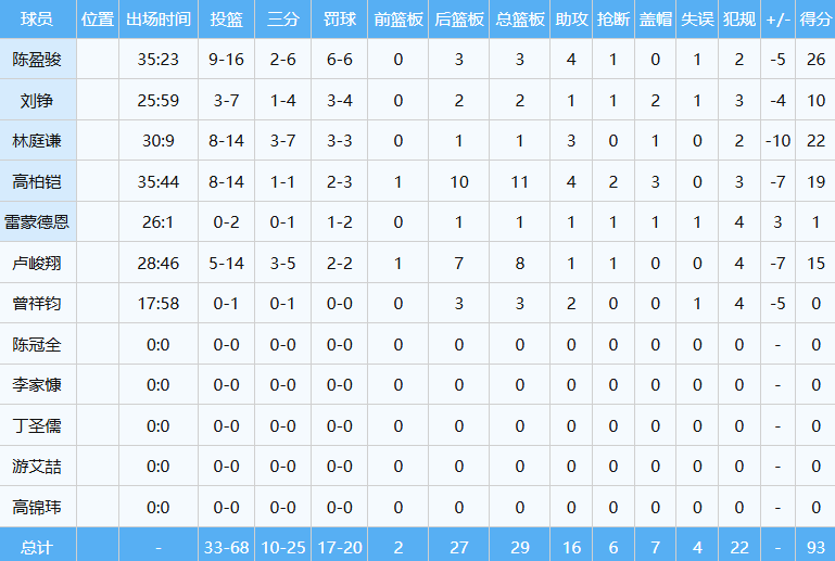 本场比赛中国男篮主要赢在阵容深度,依靠体力优势末节打出29-16攻击波。中国台北队那边则是疯狂的七人轮换,陈盈骏和林庭谦两个CBA出品的球星均倾尽所有,归化内线高柏铠也有出色发挥,可惜篮球终究不止是三个人的运动。